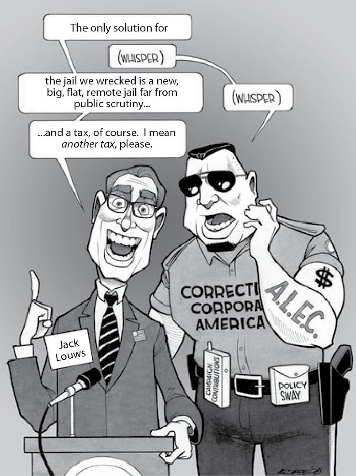 In the “Who Pays Report,” a national community-driven research project with 26 coordinating organizations, the nuts and bolts of how the incarceration industry sucks money out of inmates, taxpayers, community members and business is outlined. Corrections is a thoroughly gamed corporate money vacuum cleaner preying on local communities, and lying about it.