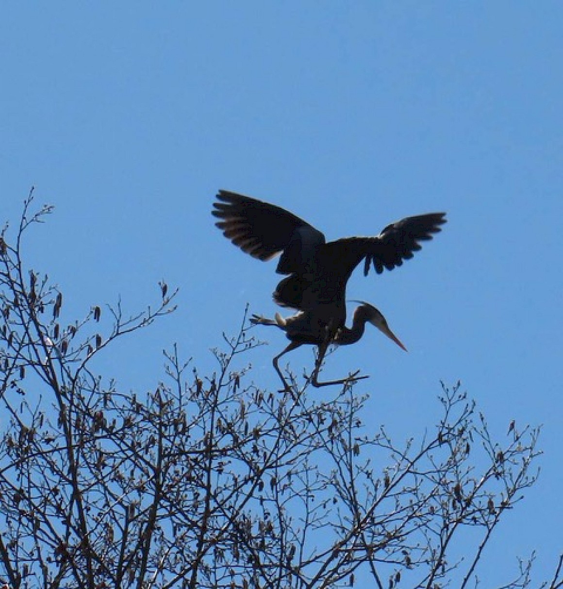 Dancing on a tree top. Taken last Saturday, March 30 at the Shorewood heronry. Photo courtesy of Nancy Downing. .