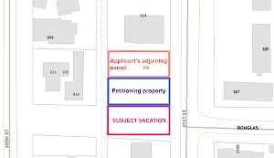 The first thing to notice is that the requested vacation is larger than the petitioning parcel - 23% larger. Even adding Skeers’ identical adjoining property, it still increases their density footprint by more than 50%.