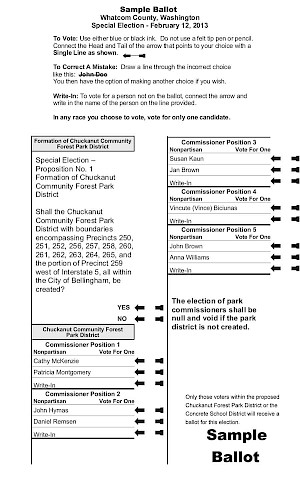 Here is some of the basic information on the election on creating a Metro Park District in south Bellingham. It is not easy to learn what and who is on the ballot and who they are. Our Auditor election page tends to bury issues in a very orderly way. There is no online voters guide for the 9 candidates for the commission offices. There is no date for when the ballots are mailed. I phoned the Auditor office and was told the ballots are mailed tomorrow, Friday, Jan 25.