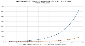 Unless the containment measures put into effect by Governor Inslee and others are able to substantially reduce the expected number of COVID-19 cases, our forecast suggests that Whatcom County’s health care facilities will be in turmoil by April 25th if 841 new cases come in that day to add to the 5,310 already confirmed as infected.
