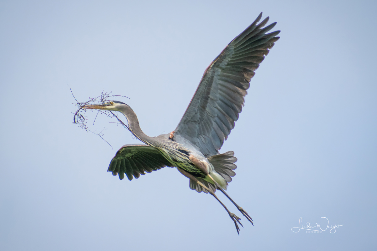 About herons and their nesting: Unlike most birds, Great Blue Herons nest in a colony, not in individual nests around an area. The colony is typically a hundred feet - more or less - in dimension. Here, they rebuild - renovate - their nests each January, lay their eggs in February or March, and raise their young until July or August when they make the leap out of the nest and fly. Eagles prey on the young fledglings while still in the nest and the herons use a terrible but effective defense against eagle raids: they build their colony next to an eagle nest. The resident eagle will snatch one or a few fledgling herons during the summer, but eagles are very territorial and it will drive away other eagles that come looking for baby herons in the colony nests. There was an eagle nest when the herons moved here 20 years ago but it has been abandoned, although the nearby tall fir trees are still used as roosting places by eagles. Those trees also need protection - and that is an additional reason the properties must be purchased. Like all things in nature, it is complex, interrelated, and astounding.