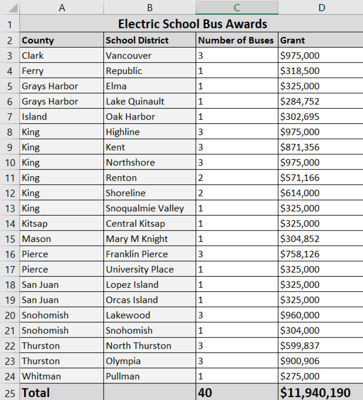 Everett Public Schools contracts with Durham for school bus service and at this time, there are no electric school busses (sic) in the fleet.