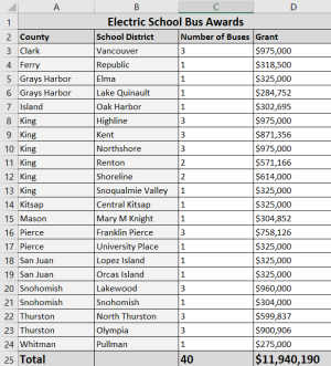 Sadly, in the face of this enormous shortfall, Bellingham Public Schools missed a big opportunity to get FREE ELECTRIC SCHOOL BUSES. As part of the Volkswagen emissions scandal Washington state was awarded $141 million for clean transportation. In fact, 24 other Washington school districts applied for, and are receiving, about 40 electric buses for free. Even worse, as far as we can tell, Whatcom County Schools and BPS didn’t even apply because they were, both literally and figuratively, asleep at the wheel, even though Bellingham Public Schools Director of Facilities and Sustainability Mark Peterson is specifically employed to look out for these opportunities.