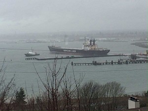 Two tugs arrived late morning and started pulling the bow of the ship off the bottom. While winds were officially measured as 67 mph at the airport, which means the wind was over 70 mph at the ship and possibly hurricane strength of 74 mph. By late morning, the wind and gusts were down to 20 and 30 mph, making the pulling of the ship more feasible.