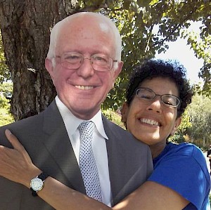 Amy Glasser with cardboard cutout of a friend. .