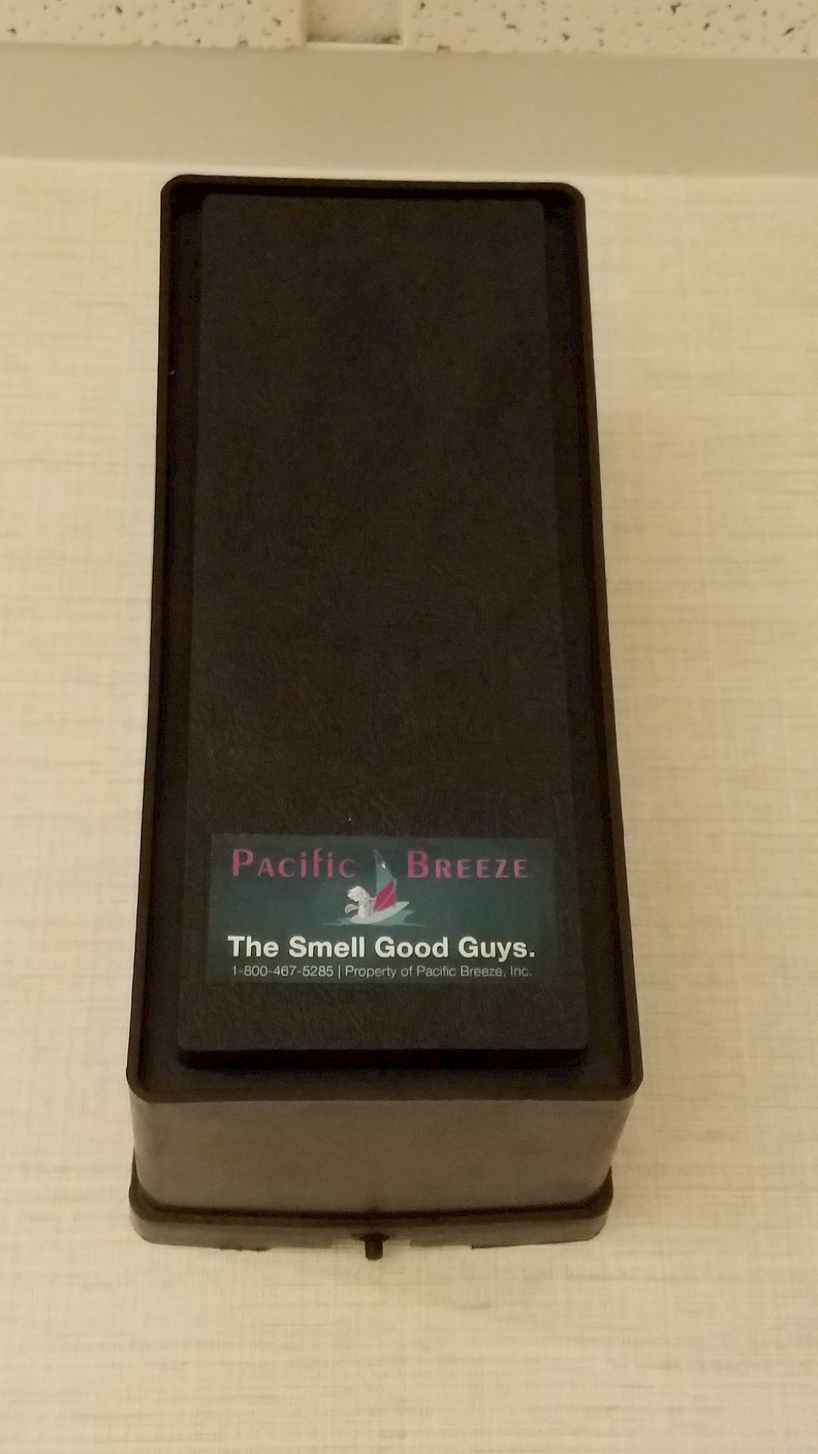 Several weeks ago, I used the rest room of a local hotel. Upon entering the facilities I was hit with such a strong odor of perfume that I began coughing uncontrollably followed by a sneezing fit. I looked around to find the source of the odor and found the box (pictured above) on the wall from an outfit called Pacific Breeze* - The Smell Good Guys. Aside from the overwhelming stench from the box, I found nothing redeemingly good about the product. When I complained at the front desk of the hotel, I received blank stares from the young staff members. I told them that the way to keep a bathroom from smelling bad is to clean it, not cover the odors with more odors… and chemicals. I also let them know that these heavy perfumes injected in the air can cause asthmatic and other respiratory attacks, some of which are serious enough to require hospitalization.