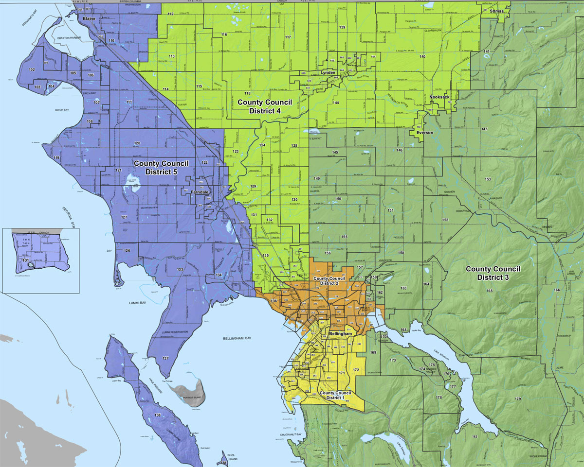 Whatcom County - the 5 new council districts. Click for large view. .
