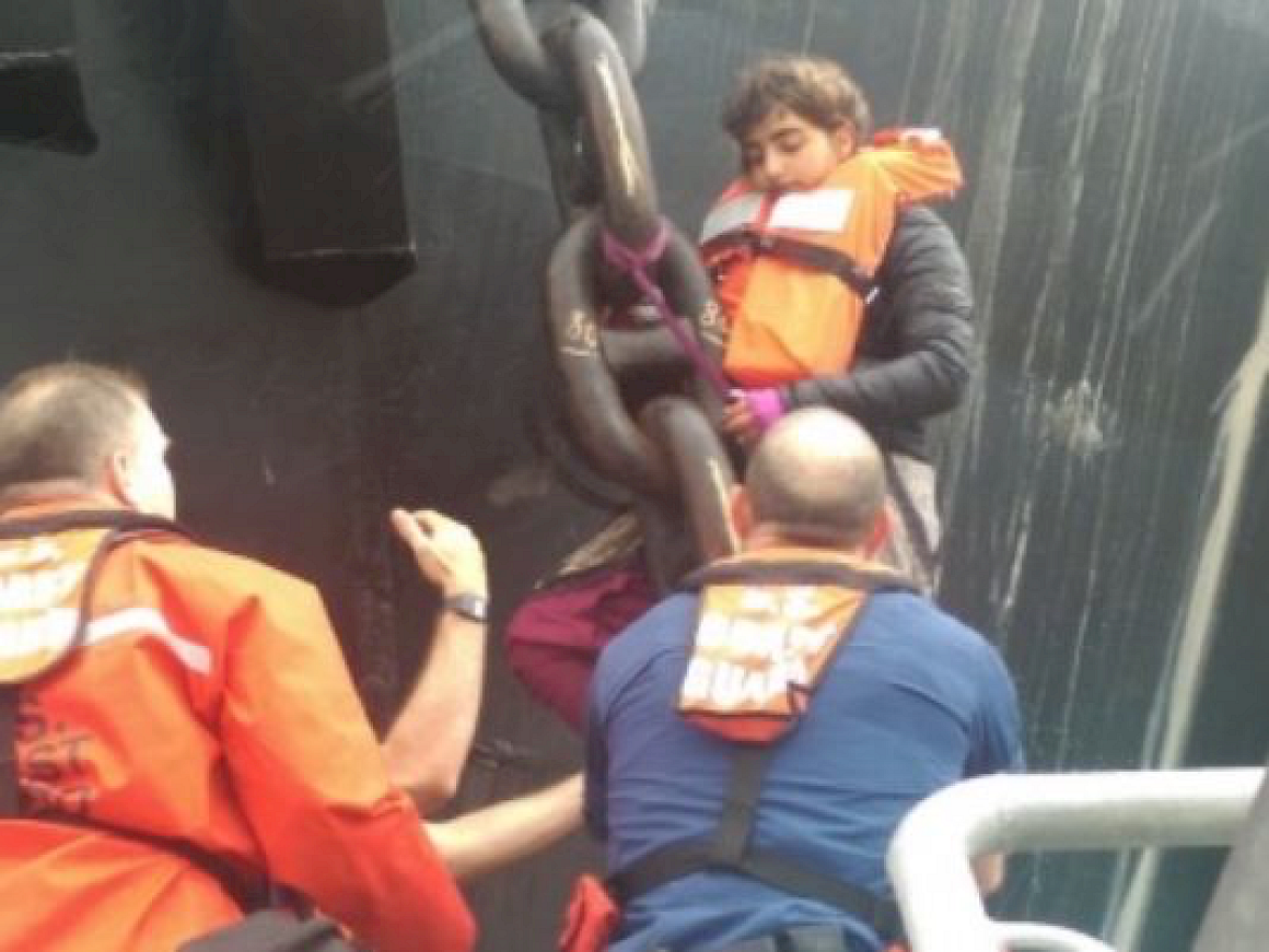 Chiara being helped down this morning by the Coast Guard. Photo taken by the Coast Guard. .