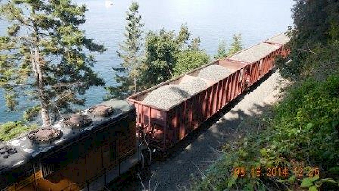 Last Friday, some time after my first article appeared about BNSF and the road closures, one of their crews dumped a train carload of gravel around Klipsun Road, off Chuckanut Drive, in such a way that some of it obliterated a resident’s trail, but much of it landed in a stormwater ditch feeding into the Bay. Some found its way into a small boat docked there according to residents’ email reports.