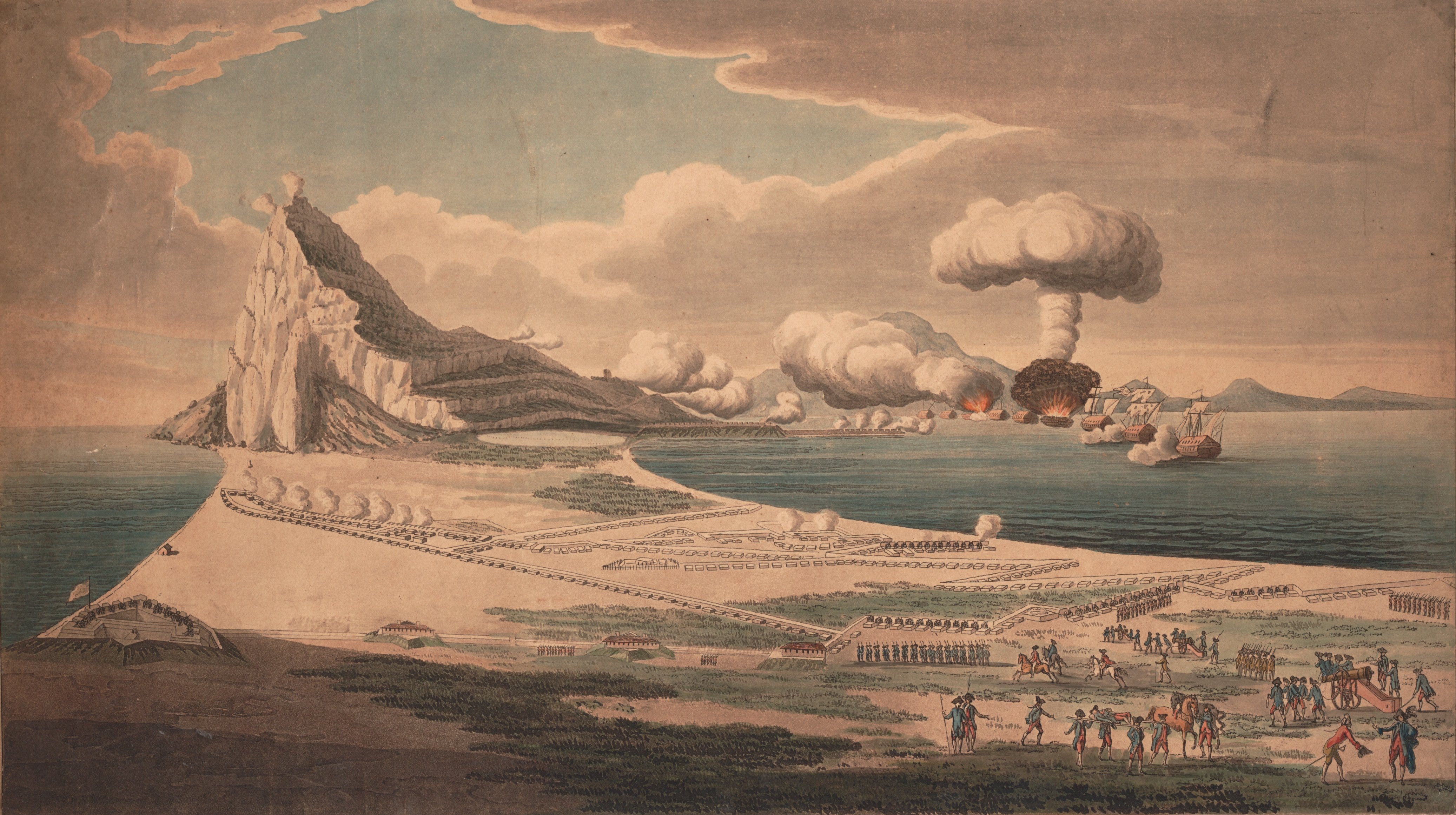 Vue du siège de Gibraltar et explosion des batteries flottantes (Commons.Wikimedia) .