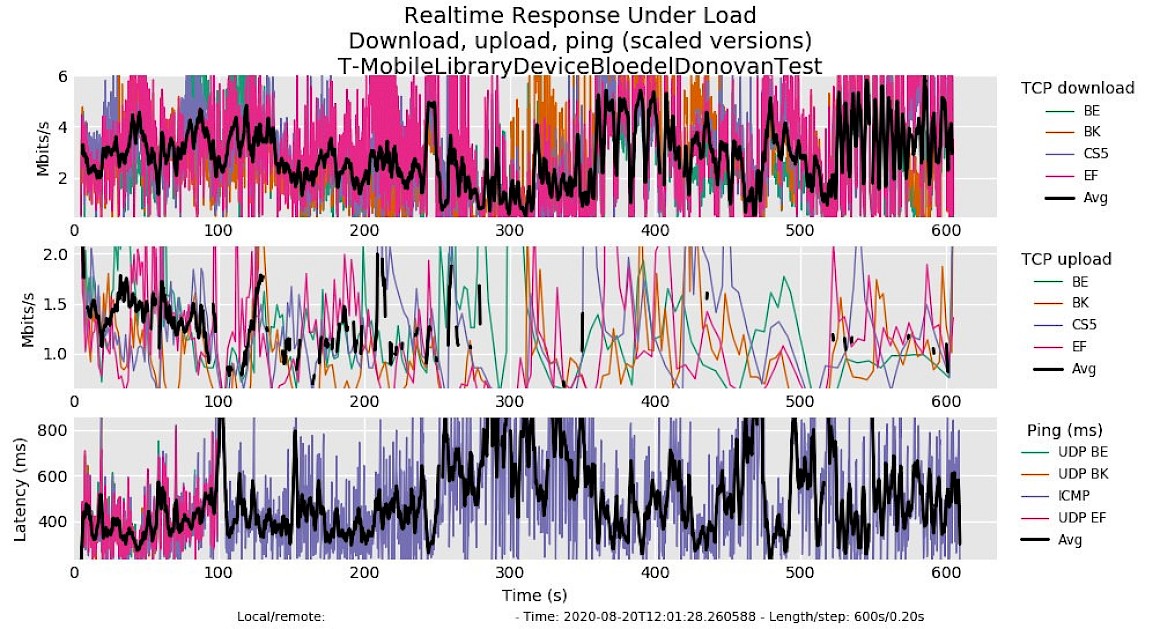 How do we know? We used real test data we had from a library hotspot to show how incredibly inadequate wireless solutions were and how any money spent on them would not only be wasted, but actually make the digital divide worse. We also used Flent, the network load tester, and an rrul test in several locations. The pics included with this article are some of the ones I have sent to the schools and government offices over the last several months. This set was taken at Bloedel Donovan Park. If connections were this bad at Bloedel, expect them to be worse for most people in the county. Sure, there will be some outliers, like people who live next to emitters, which have their own list of problems, but on the whole, county connections will be worse.