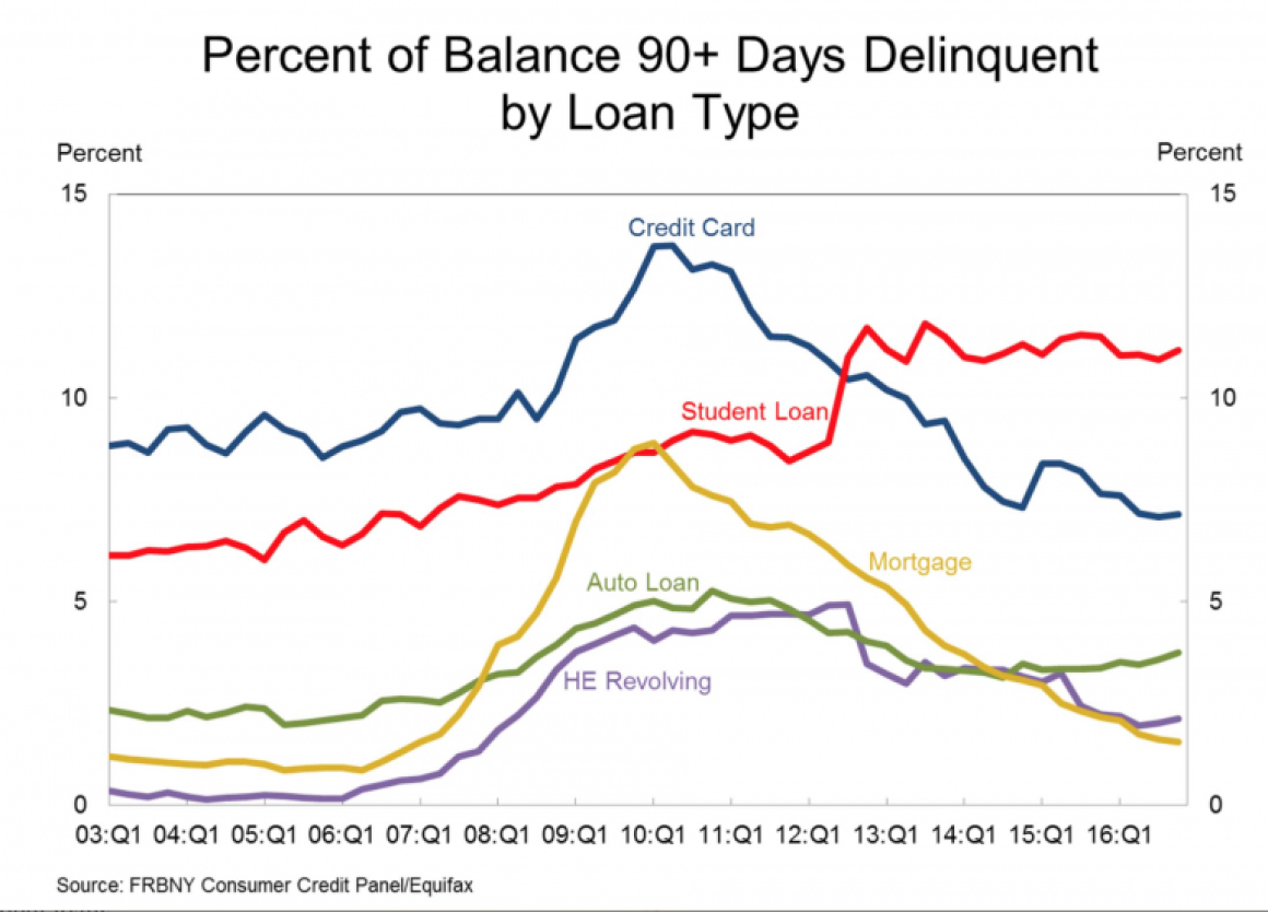 US Consumer Debt Default Rates - Student Debt Default rate higher than mortgage delinquencies in 2008! .