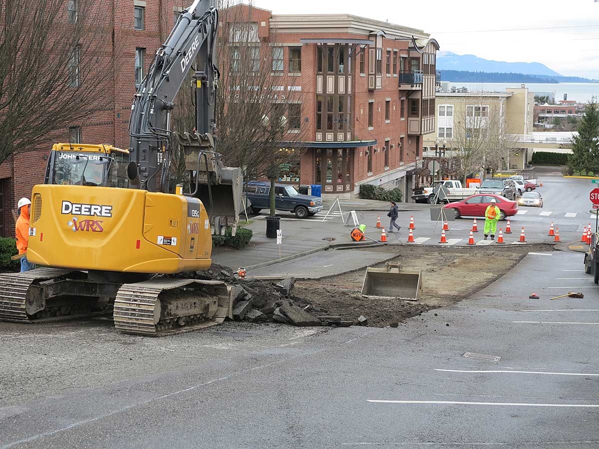 …and the Historic Fairhaven shopping district rang with the noise of city public works tearing up the street.
