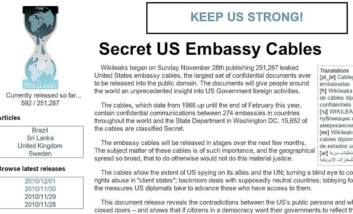Another interesting item to note: Most news media you have seen or read have said WikiLeaks released 250,000 U.S. diplomatic cables. Not true. WikiLeaks has posted about 611 cables - and intends to post all 250,000 over the next six months. Our news media cannot get very much about this story right. WikiLeaks did give all 250k to four European news outfits, on the condition they release them only after WikiLeaks has. But our American media do not report it that way. Meanwhile, our U.S. government, under Obama, is on a huge campaign to shut down all servers aiding WikiLeaks. Remeber when the Soviet Union always tried to block the Voice of America and we felt so good because we lived in the Land of the Free?