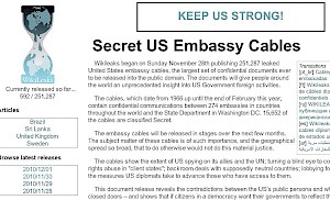 Dec 3 note: Wikileaks has opened a new website in Switzerland. wikileaks.ch The ch stands for "Confederation Helvetica," the latin name for Swiss Confederation. The old address of wikileaks.org was bullied off-line by the U.S. Feds over the past couple days. WikiLeaks continues to post new U.S. State Department cables. And inform us of what our government has been up to in foreign affairs these past 20 years. And allow us to learn how our government has really been acting overseas in our name. We as voters need to know so we can vote intelligently.
